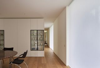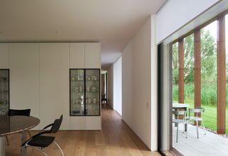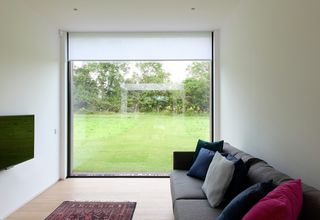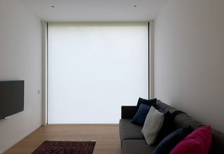 Enplanshuset är omgiven av stora fönster från golv till tak. I linje med den minimalistiska designen är rullgardin SG 4970 diskret installerad i en djup nisch. Med vitt Colorama 2 tyg sprider solskydden ett behagligt ljus in i denna anmärkningsvärda och sympatiska interiör.